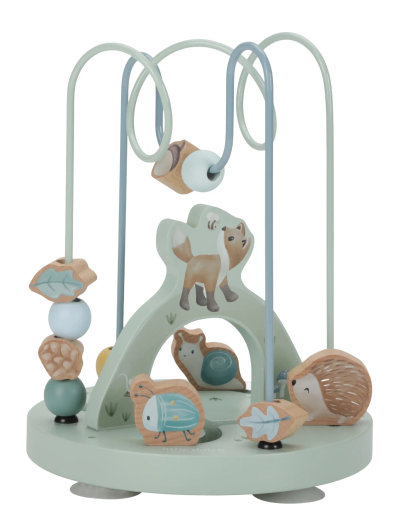 Styr pärlorna från vänster till höger genom den förtrollade världen av Forest Friends. Längs vägen möter du den vänliga räven, igelkotten, skalbaggen och den lilla snigeln som lever och leker i skogen. Skjut dem från sida till sida för att upptäcka de välsmakande ekollonen, frodiga bladen och kottarna som ligger mellan trädens rötter. Låt resan börja och se fantasin sväva iväg! Den här aktivitetsspiralen i trä ger en lärorik och förtrollande upplevelse för ditt barn.