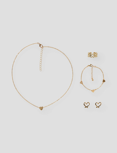 Det här accessoarsetet ger en personlig touch till varje look, vilket gör det perfekt för både vardagsoutfits och speciella tillfällen. Setet innehåller ett halsband, ett armband, en ring och örhängen.