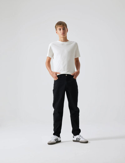 Dessa jeans är ett bra val för barn som vill ha ett bekvämt och snyggt utseende. De är gjorda av en mjuk och hållbar blandning av bomull och polyester, och de har en avslappnad passform som är perfekt för vardagsbruk. Jeansen har en klassisk femficksdesign och ett rakt ben.