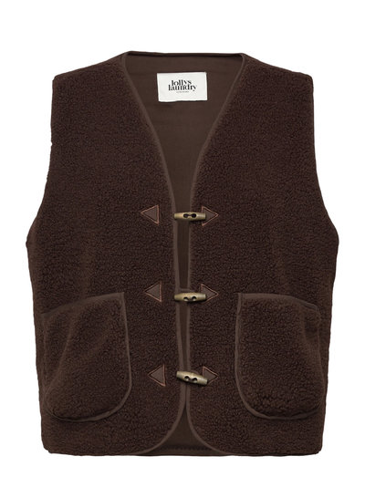 Denna teddyfleeceväst erbjuder både värme och en distinkt look, vilket gör den idealisk för lager-på-lager-styling. Den har en avslappnad silhuett, kompletterad med signaturspännen och praktiska framfickor. Bär den över stickade plagg för extra värme eller med lättare toppar för en snygg och bekväm ensemble.