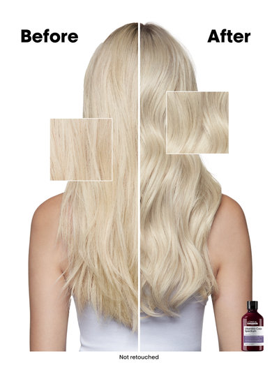 [PATENTERAD TEKNOLOGI] Detta vårdande shampoo är formulerat med lila färgpigment och vårdande ingredienser. Håret blir omedelbart rent, näringsberikat, 91 % starkare*, 76 % mer återfuktat* och omedelbar 59 % mer glansigt*.