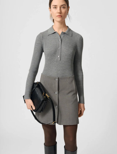 Denna kjol har en strömlinjeformad silhuett och erbjuder en modern tolkning av en klassisk design. Knapparna framtill ger en visuell detalj, vilket gör den till ett mångsidigt plagg för olika tillfällen.
