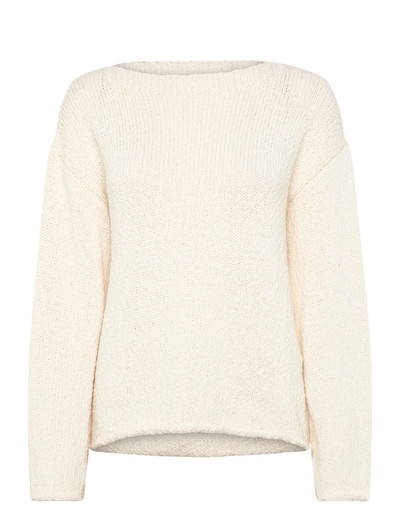 Denna stickade tröja har en avslappnad, ledig passform med nedhasade axlar och vida ärmar. Fållen och ärmarna avslutas med en diskret rullkant.