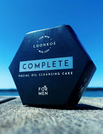 Complete oljerengöringskaka för ansikte. Oljerengöringskakan balanserar, rengör och lugnar din hud. Den innehåller många antioxidanter, superfoods, vitaminer och goda fettsyror, som är viktiga för huden. Complete är utformad för mäns hud och är en 100-procentigt naturlig och vegansk utan tillsatsämnen. Den rengör huden varsamt och lugnar ned hudirritationer orsakade av rakning.