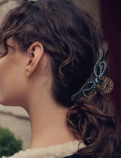 En charmig rosett ger denna hårklämma en elegant touch, vilket gör den till ett härligt tillskott till varje frisyr. Klämman ger ett säkert och bekvämt grepp, så att ditt hår hålls på plats med en touch av elegans.