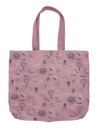 Denna corduroy-väska kombinerar praktisk användbarhet med en touch av magi och har en förtrollande design. Stjärnor, hjärtan, halvmånar och solfjädrar framkallar teaterns fängslande lockelse.