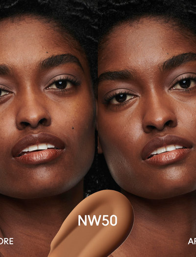 Serumet i denna foundation skapar fantastisk lyster. Upplev en foundation med serum som kombinerar vår expertis om hudtoner med hudvårdsforskning. Denna helt nya innovation ger +209 % återfuktning för en fylligare, smidigare och mer strålande hud. Vår banbrytande foundation ger också huden en återfuktad och hälsosammare som strålar av lyster hela dagen. Den innehåller en 80-procentig hudvårdsbas med 33 hudvårdsingredienser som en 10-procentig hyaluronsyralösning som binder fukten under hudytan. Den är också berikad med en cocktail av kraftfulla superfoods som vårdar huden, bland annat oliv- och jojobaolja som vårdar huden för att ge dem hälsosam lyster, plus E-vitamin som skyddar huden mot föroreningspartiklar och blått ljus. Studio Radiance Serum-Powered™ Foundation återfuktar i 24 timmar och ger en medium uppbyggbar täckningsgrad som omedelbart jämnar ut hudtonen. Denna lätta foundation tonar också ned porer, rodnad, mörka fläckar och fina torrhetslinjer. Skapa skräddarsydd lyster med denna foundation utvecklad av makeupartister med pärlemorskimrande silver- och guldpartiklar som är särskilt framtagna för att komplettera unika undertoner av ljus och mörk hud. Finns i 56 nyanser så att du kan hitta en som passar just dig. Den återvinningsbara glasflaskan är tillverkad med hållbarhet i åtanke och har en kork tillverkad av 30 % PCR. •+209 % omedelbar återfuktning* för fylligare, smidigare och mer strålande hud