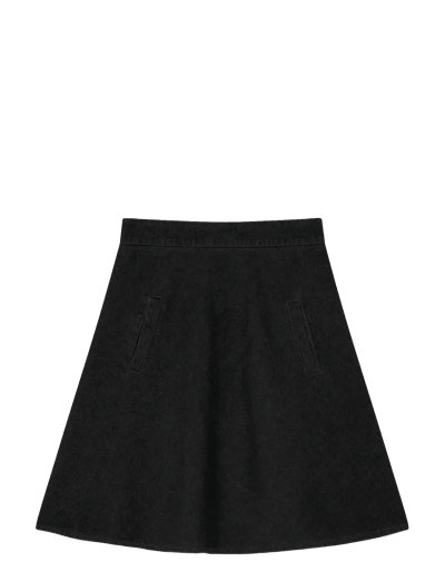 Denna A-linjeformade kjol är tillverkad av ren bomullsdenim och ger en smickrande silhuett. Designad med en hög midja och en fast linning, den har en praktisk dragkedja. En mångsidig kjol för vardagsbruk.