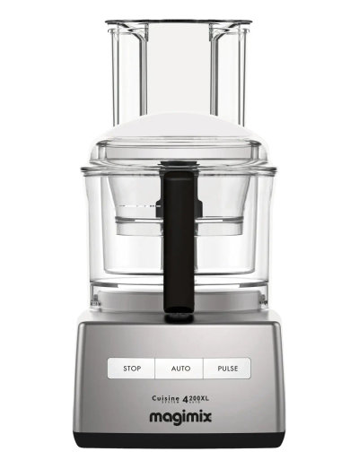 Magimix CS 4200 XL är en matberedare av hög kvalitet med många funktioner, den är enkel att betjäna med tre knappar: auto/pulse/stop. Den tystgående motorn reglerar automatiskt effekten efter skålens innehåll. Matberedaren skär, river, hackar, vispar, blandar och knådar. Tre platsbesparande och rymliga skålar gör tillagningen enkel och praktisk.