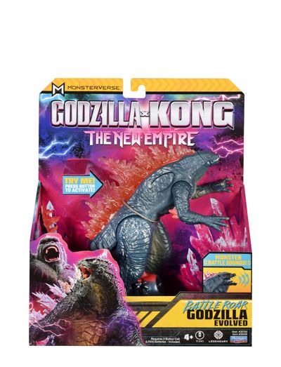 Return to Hollow Earth with Godzilla and Kong in an all-new adventure! When a colossal threat is discovered within our world, Godzilla and Kong must fight to protect their existence—and our own. The Godzilla x Kong 7” Battle Roar Godzilla brings the King of Monsters to your collection, with epic new details that capture his movie look. Set includes Godzilla’s Battle Roar sound effects and comes in a unique Godzilla X Kong package!