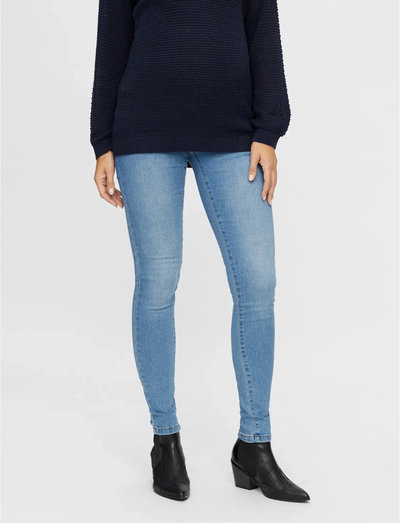 Dessa slim-fit jeans är designade för gravida kvinnor. De är gjorda av en bekväm blandning av bomull, polyester och elastan. Jeansen har en smickrande slim fit och en bekväm över-the-bump midja.