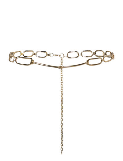 Detta midjetillbehör har en metallisk finish och är designat med sammanlänkade länkar. Den är utrustad med en dragkedja och karbinhake för en säker och justerbar passform.