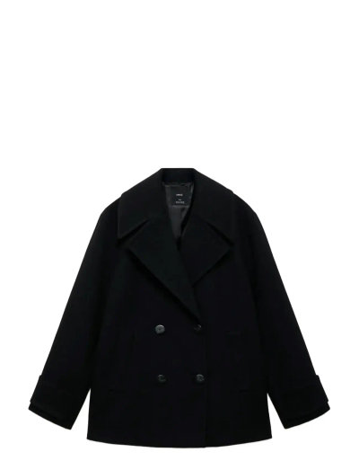 Wool mix fabric, Wrap design, Straight Design, Notched lapel collar, Lapel with notch, Long sleeves with buttoned strip cuffs, Two side pockets, Front closure with crossed buttons, Inner lining