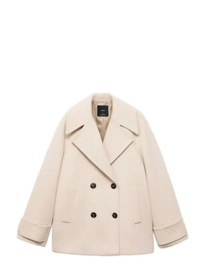 Wool mix fabric, Wrap design, Straight Design, Notched lapel collar, Lapel with notch, Long sleeves with buttoned strip cuffs, Two side pockets, Front closure with crossed buttons, Inner lining
