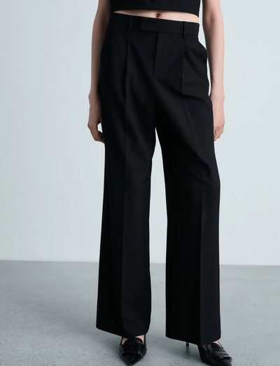 Dessa raka byxben i kostym är ett mångsidigt och stilfullt tillägg till vilken garderob som helst. De har en klassisk design med hög midja och raka ben. Byxorna är gjorda av ett bekvämt och andningsbart tyg, vilket gör dem perfekta för både arbete och fritid.