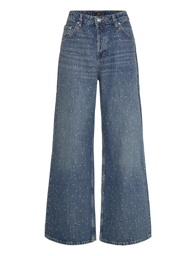 Wide fitDessa jeans med vida ben är designade för speciella tillfällen och har en klassisk design med fem fickor och glittrande strassdetaljer. De långa bomullsbyxorna i denimstil har även bälteshällor, knäppning och en smickrande midjehöjd.