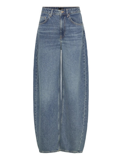 Dessa långa jeans är tillverkade i ett bekvämt bomullsmaterial i denimstil och har en distinkt ballongdesign. Den mellanhöga passformen kompletteras av praktiska bälteshällor och fem fickor, och de avslutas med en klassisk knapp- och dragkedja.