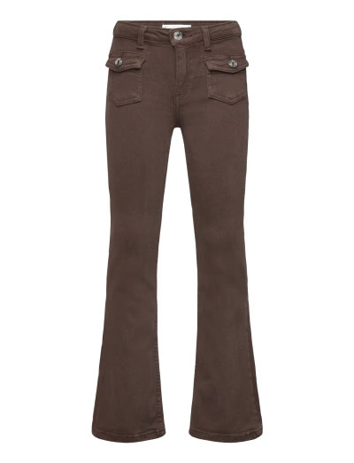 Dessa jeans har en subtil flare och påsydda fickor fram, vilket ger en stilfull silhuett. De är tillverkade av ett stretchigt bomullstyg och har bälteshällor, knapp- och dragkedjestängning samt påsydda fickor bak.