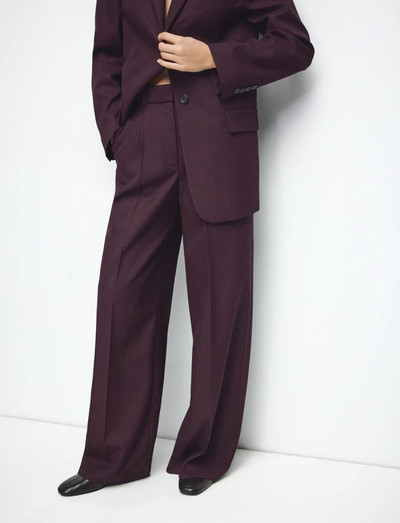 Dessa byxor är designade för en strömlinjeformad silhuett och har en bred benvidd och en medelhög midja. De är en del av en kostym och ger en komplett look, komplett med dartdetaljer, sidfickor och bälteshällor. De stängs fram med en hyska och en dold dragkedja, och byxorna är avslutade med ett innerfoder.