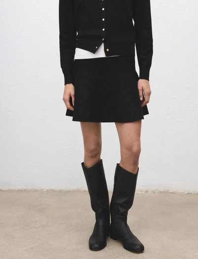 Denna stickade kjol är designad med en smickrande A-linje silhuett och har en bekväm, medelhög midja. Det fina stickade tyget faller vackert, medan den elastiska linningen säkerställer en säker och flexibel passform. Ett mångsidigt plagg för varje garderob.