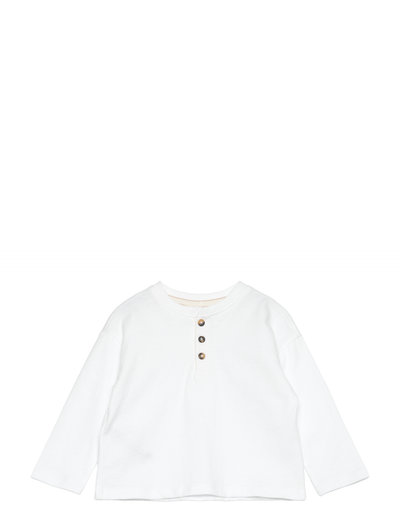 Den här långärmade t-shirten är en klassisk del i alla barns garderob. Den har en bekväm passform och en enkel design som kan stylas upp eller ner. T-shirten är gjord av mjuk bomull och har en knappslå vid halsringningen.