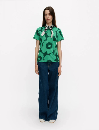 Denna topp är tillverkad av mjuk bomullsjersey och har en smal, rak passform som ger en smickrande silhuett. Den kortärmade designen har ett livfullt mönster och avslutas med en bekväm ribbstickad O-ringning. På grund av den unika tillverkningsprocessen kan utseendet på varje artikel variera, vilket säkerställer att varje plagg är unikt.