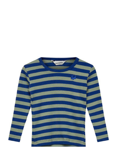 Denna långärmade t-shirt har ett klassiskt randigt mönster och är ett bekvämt och stilfullt val för vardagsbruk. Designen kompletteras med en liten blomdetalj vid halsringningen.
