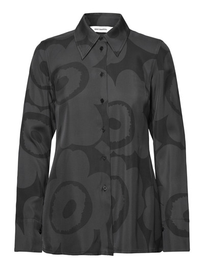 Denna knäppta skjorta har ett djärvt blommönster och en figurnära, rak skärning. Den är designad med knäppning, sidopaneler och bröstinsnitt för en smickrande form. Ärmarna avslutas med breda uppvik med slitsar och knäppning. Plagget är tillverkat av återvunnen viskostwill.