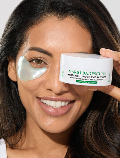 Ge dina ögon en omedelbar boost med Mario Badescu Hydrogel Under Eye Mask – kylande och återfuktande ögonpatches berikade med hyaluronsyra, niacinamid, koffein, tigergräs och rödalg.
