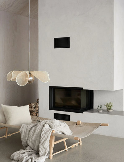 Styrka pendel från Markslöjd. Bas i svart metall. Skärm i svart bananfiber och rökfärgat glas. 2m svart textilkabel med svarta metall detaljer. Diameter 63cm. 1xE27, max 40W. Ljuskälla ingår ej. Design Anja & Filippa.