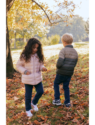 VattenavvisandeVegan puffer with zipper in a light quality with elastic bands on the sleeves and bottom. The jacket has two hidden pockets and a high collar.