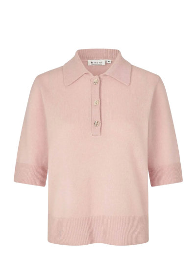 Med en klassisk polokrage och en knappslå erbjuder denna stickade topp en raffinerad men avslappnad look. De korta ärmarna och den raka fållen bidrar till dess mångsidiga utseende, vilket gör den till ett bra komplement till varje garderob.