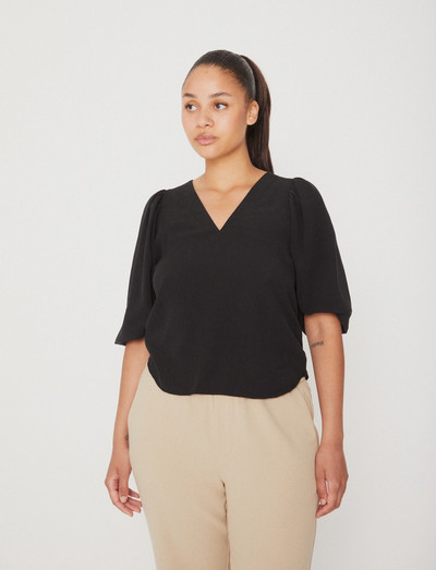 Antoni-blusen från mbyM OB är ett snyggt och mångsidigt plagg som kan stylas upp eller ner. Den har en V-ringning, tre fjärdedelar ärmar och en avslappnad passform. Blusen är gjord av ett mjukt och bekvämt tyg som är perfekt för vardagsbruk.