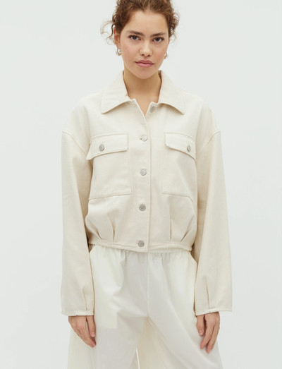 Med sin korta längd och knäppning framtill ger denna jacka en modern twist till en klassisk silhuett. Designen har en krage och bröstfickor, vilket kombinerar funktionalitet med en modern estetik.