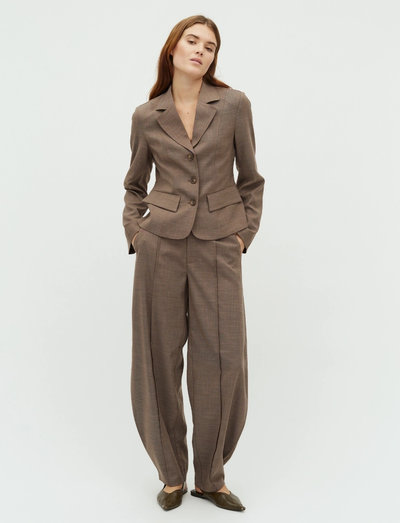 Med en distinkt bred benmodell erbjuder dessa byxor en modern silhuett. Designen har en skräddarsydd linning och subtila veck för en förfinad touch, vilket gör dem idealiska för både smarta och avslappnade tillfällen.