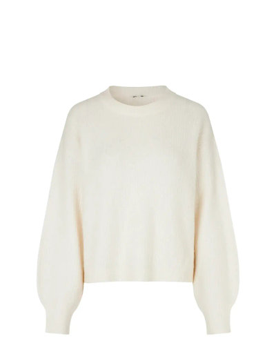 Denna stickade tröja har subtilt voluminösa ärmar och en bekväm O-ringning. Den mjuka stickade konstruktionen ger en mysig känsla, vilket gör den idealisk för lager-på-lager-look.