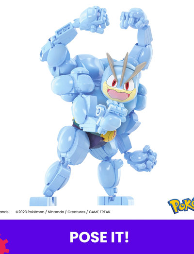 Kampsportmästaren Pokémon Machamp är redo för ett MEGA-bygge! Bygg Machamp och vrid sedan på ratten för att aktivera slagrörelser. Machamp är 17,8cm hög och har fyra ledade armar. Machamp är ett enastående byggset du inte vill missa.