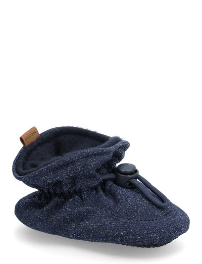 Dessa mjuka och bekväma tofflor är perfekta för att hålla små fötter varma och mysiga. De har ett texturerat tyg på utsidan och en mjuk fleecefodring för extra värme. Tofflorna har en säker stängning med en dragsko och en knapp för en bekväm passform. De är idealiska för inomhusbruk och ger ett bekvämt och snyggt utseende.