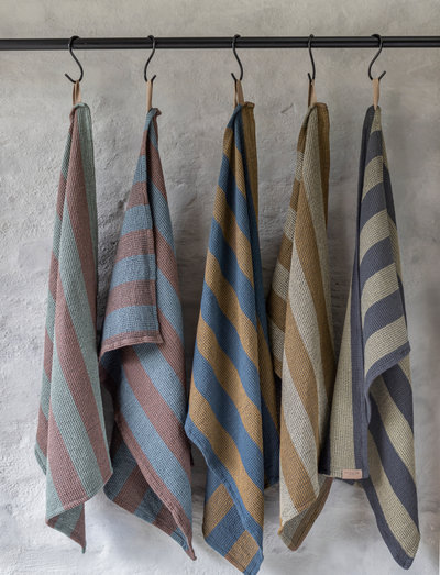 ELVIRAs kökshanddukar är tillverkade i 100% ekologisk bomull. Viskorna är våffelvävda vilket inte bara ger dem en fin volym utan också gör dem strykfria. Det vackra randmönstret har vävts i färgat garn vilket innebär att båda sidorna av kökshandduken är lika fina. Viskorna har god uppsugningsförmåga och hög färghastighet, vilket innebär att du kan njuta av både funktionalitet och estetik under lång tid. ELVIRA-serien består av: kökshanddukar och disktrasor. Serien finns i 5 olika färger.