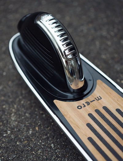 The Micro Navigator is an adult commuter in a classic collectors vintage design.This ergonomic aluminum scooter offers maximum riding comfort thanks to the extra large, smooth-running PU wheels and the height-adjustable handlebar.The high-quality leatherette handles, the integrated compass on the handlebar and the wide deck with wooden design gives the scooter a unique and nostalgic look.In addition, the Micro Navigator has an easy-to-operate folding mechanism which allows the scooter to be easily folded for bringing along or stored away.It can be parked effortlessly anytime and anywhere thanks to the integrated kick stand.The non-slip deck and a red reflex on the back ensures enhanced safety and visibility.The scooter has a foot brake on the rear wheel.