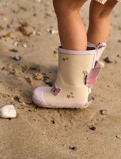 ReflexdetaljerDesigned for wet-weather play, this wellie combines functional barefoot construction with playful 3D butterfly details. The flexible barefoot sole allows natural foot movement and close ground contact, supporting a more natural walking pattern.The waterproof rubber keeps feet dry, while reflective details improve visibility in low-light conditions. A pull tab at the back makes the boot easy to put on, and the durable outsole provides reliable grip on wet surfaces. Finished with decorative 3D butterfly patches for a soft, playful look.- Waterproof rubber upper- Flexible barefoot sole for natural movement- Reflective details for enhanced visibility- Durable outsole with reliable gripSIZE GUIDEInsole length in centimetres. Remember to account for 1,5 centimeters for the feet to grow.Size 19 = 12,5Size 20 = 13,1Size 21 = 13,8Size 22 = 14,5Size 23 = 15,1Size 24 = 15,8Size 25 = 16,5Size 26 = 17,1Size 27 = 17,8Size 28 = 18,4Size 29 = 19,1Size 30 = 19,8Size 31 = 20,4Size 32 = 21,1Size 33 = 21,7Size 34 = 22,4Size 35 = 23,1Size 36 = 23,8Size 37 = 24,5Size 38 = 25,1