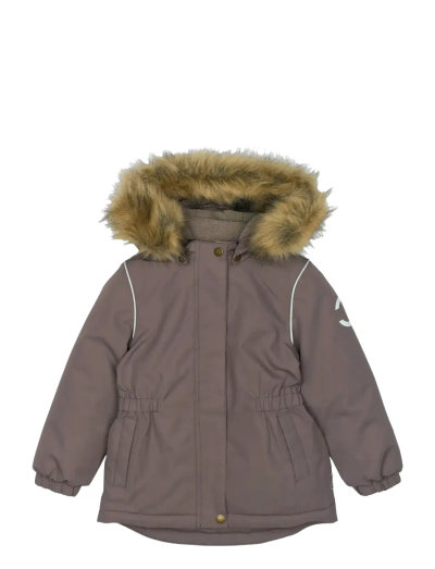 VattentätSolid-coloured mikk-line winter jacket for girls to enjoy outdoor activities and adventures. The jacket's outer fabric is made from polyester, while the jackets inside is lined with polyester and quilted with polyester padding.This lightweight, quality winter jacket is an excellent outerwear item that will keep your child warm, dry, and comfortable in wet, windy, cold, and snowy winter weather. The jacket has fluorine-free coating (BIONIC-FINISH® ECO).EXCELLENT & FUNCTIONAL DESIGN- Solid coloured with a simple and elegant design.- Pockets to store small treasures, snacks, gloves etc. - Smooth-running reversible YKK zipper and chin protection. - Detachable hood with snap buttons that are easy to pull off in case the child gets stuck.- Name tag with room for more than one name, so please let it be re-loved. TECHNICAL ADVANTAGES- Outer: 100% Polyester, Lining: 100% Polyester, Padding: 100% Polyester.- Windproof and insulating with fluffy, lightweight polyester filling to keep the child warm and fully protected against the cold wind. - Waterproof fabric with a water column pressure at 20.000 mm, which can keep the child dry in extreme rain. - Taped seams for further waterproofing. - Breathability at 5.000 g/m2/24hrs to prevent sweat and keep dry on the inside.- Easy-to-clean with dirt repellent that also prolongs its use before a wash is needed. - The child is safer in the dark du