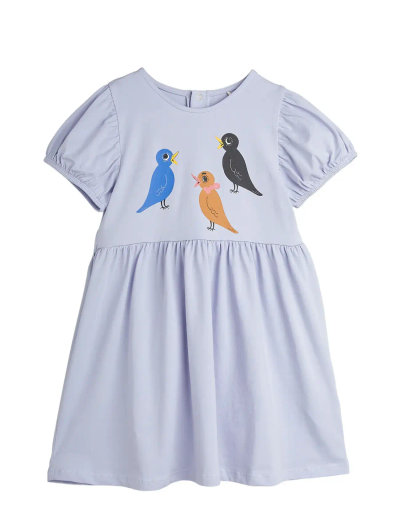 Den här charmiga klänningen har ett härligt fågeltryck. Den har korta ärmar och en bekväm passform. Klänningen är perfekt för avslappnat bruk. Den är gjord av mjuk, andningsbar tyg.