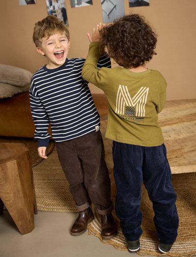 Soft pants from Minymo. The drawstring at the waistband is a nice detail that ensures an adjustable fit. The soft material of the pants, made from 100% organic cotton, ensures the child has freedom of movement and maximum comfort throughout the day. Certified acc. to GOTS - organic CERES-0366