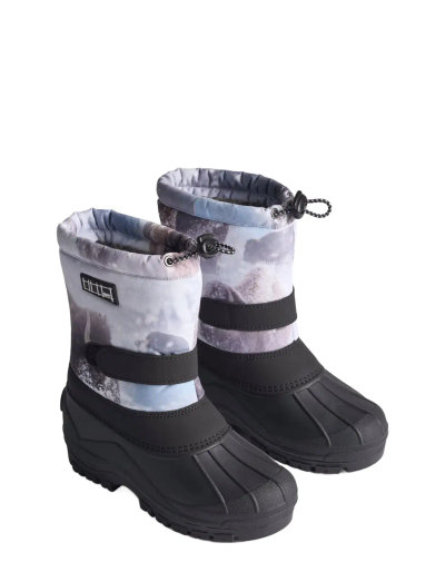 Winter boots from Molo with a sturdy, non-slip black sole. The boots have an adjustable elastic at the top of the shaft, adjustable velcro around the ankle, and an inner sock. They are wind and water-repellent as well as breathable. The boots also have a strong inner lining that retains heat and reflectors to increase visibility in traffic.