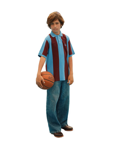 This polo T-shirt is crafted from soft cotton, featuring a classic collar and button closure. Its relaxed fit and distinct vertical stripes provide a stylish look for any occasion. The shirt is complete with a small chest logo that reads 'Unity', making it a versatile choice for everyday wear. Ideal for active children who enjoy comfort and style.