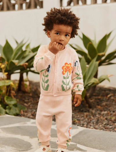 These knitted trousers for little ones are crafted from soft cotton and feature charming floral details. Designed with ribbing at the waist and ankles, they provide a snug and comfortable fit for active play. Perfect for any season, these versatile trousers offer both style and comfort, making them a great addition to your child's wardrobe. Easy to pair with any top for a playful look.