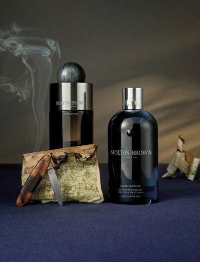 Molton Brown Dark Leather Bath & Shower Gel sätter lite extra guldkant på din badritual, med en berusande, intensiv doft av rökigt läder, uppfriskande tall och svart te. Denna intensiva duschtvål rengör huden och lämnar den härligt väldoftande.