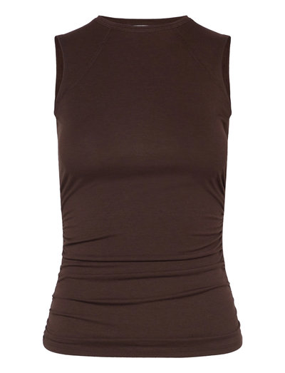 A sleeveless top with a slim fit and soft stretch. Crafted from stretchy jersey, it features flatlock seams and gathered detailing along the side seams for a softly ruched effect. Finished with raglan-style armholes and a round neckline.