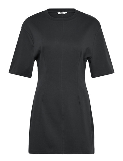 A short-sleeved mini dress crafted from soft cotton with a smooth feel. Designed with a classic round neckline, subtle shaping darts through the body, and slightly dropped shoulders for an easy silhouette.
